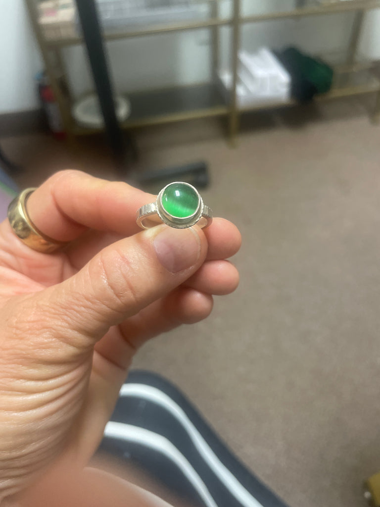 Green cat eye bezel ring