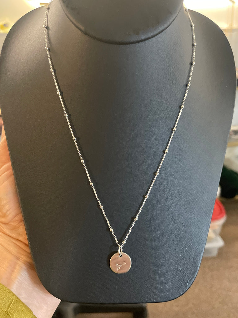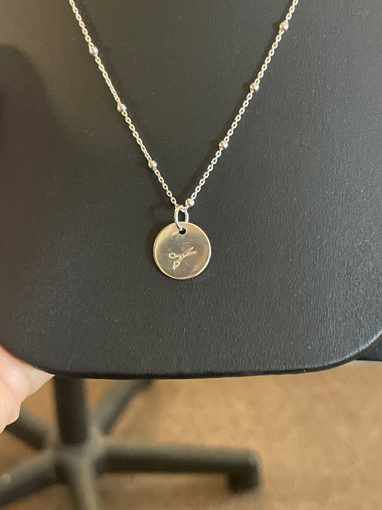 Round disc pendant w scissor stamp; perfect gift for someone graduating from hair school or for your favorite stylist!